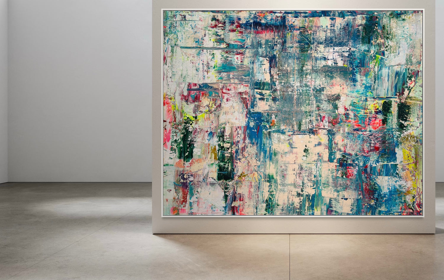 Über einen Zeitraum von 4 - 6 Wochen schichte ich Lacke, Pigmente, Acryl, Gouache und andere Materialien – stets ohne den Einsatz der Nichtfarbe Schwarz. Die Wahl und Auftragstechnik der Farben bestimmen das Gesamtergebnis meiner Bilder.