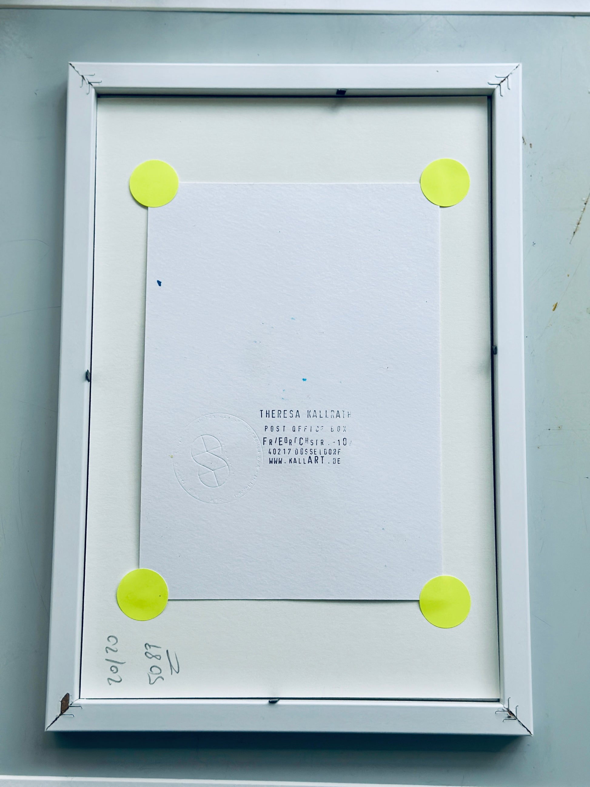 Kleine Kratzer oder Gebrauchsspuren am Acrylglas, Rahmen gelten nicht als Reklamationsgrund, da es sich um eine kostenfreie Schutz- und Versandrahmung handelt.